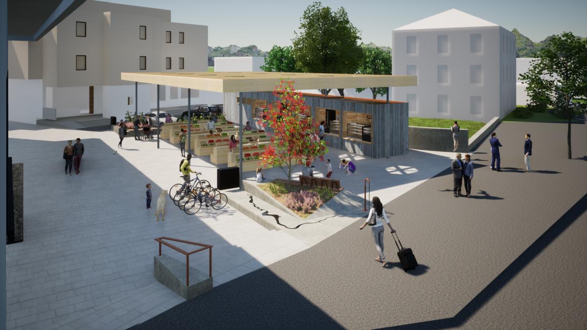 Z izvedbo investicije so predvideni rekonstrukcija tlaka obstoječega trga, ureditev nadstreška nad odprtim prodajnim prostorom, kjer bodo postavljene stojnice, odstranitev starih in postavitev novih enotnih objektov, namenjenih prodaji pridelkov/izdelkov, celostna ureditev pripadajočega javnega prostora na tržnici in postavitev urbane opreme, ureditev elektro priključkov (javna razsvetljava, električni priključki prodajnih kioskov …), odstranitev obstoječega vodnjaka, ureditev pitnika …